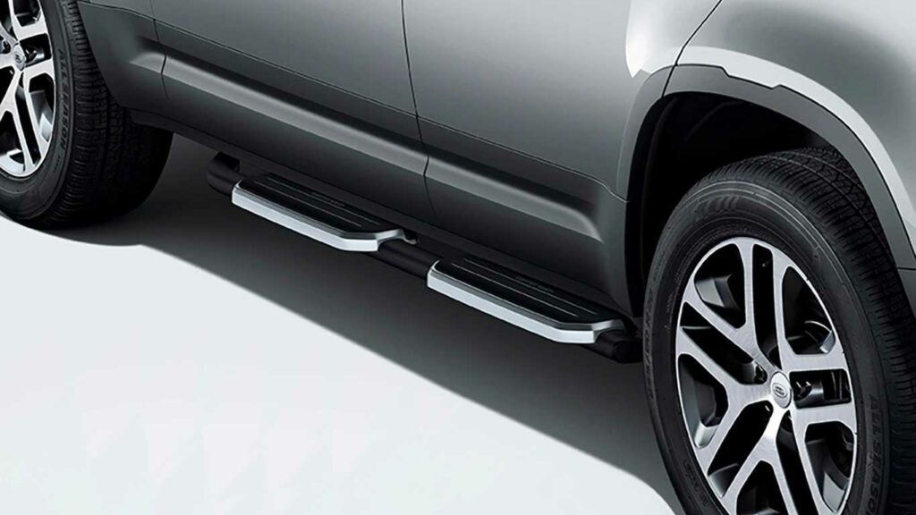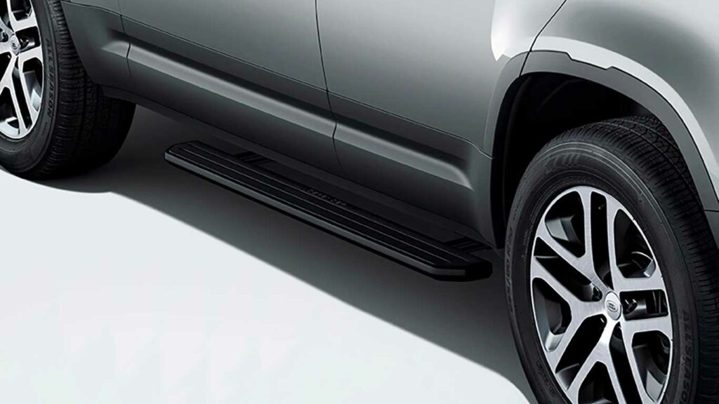 El precio incluye todo el material necesario, instalación, homologación e impuestos. Oferta válida hasta el 31/12/2025 Los estribos laterales fijos facilitan la entrada y salida del vehículo, así como el acceso al techo. Cada estribo lateral cuenta con un acabado de acero inoxidable pulido, con la marca Range Rover grabada con láser en la alfombrilla negra moldeada del umbral de puerta y un acabado con borde brillante que complementa el diseño exterior del vehículo. Disponible sólo para SWB El kit incluye dos estribos laterales fijos SWB, soporte de montaje izquierdo, soporte de montaje derecho, puntos de elevación y juego de tiras de cierre del vehículo. La instalación de los estribos laterales puede afectar a la capacidad todoterreno del vehículo. No es compatible con estribos laterales retráctiles ni con tubos de protección lateral con acabado en Bright. La instalación de los estribos laterales puede afectar a la capacidad todoterreno del vehículo. Consultenos para confirmar disponibilidad y compatibilidad